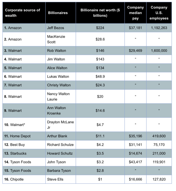 The post Sixteen Billionaires Who Made Their Fortunes Off the Backs of Low-Wage Workers appeared first on CounterPunch.org.