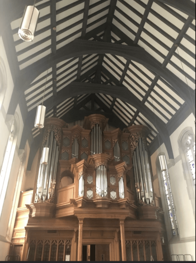 In the Cornell chapel, I put my iPhone on the altar, pressed “record,” then went up to the organ loft and improvised a prelude to the Symphony of Soles we had discussed. My miniature began with the feet alone playing Renaissance counterpoint—not on the pedal’s biggest and most powerful pipes, but instead using its littlest ones: sweet flutes. This was meant to be an evocation of our ancestors walking on branches. This pedal polyphony then paused on a single pitch, as if overtaken by other thoughts. The music and monkey descended from the tree. A single cluster accumulated, as if the feet were feeling the earth.