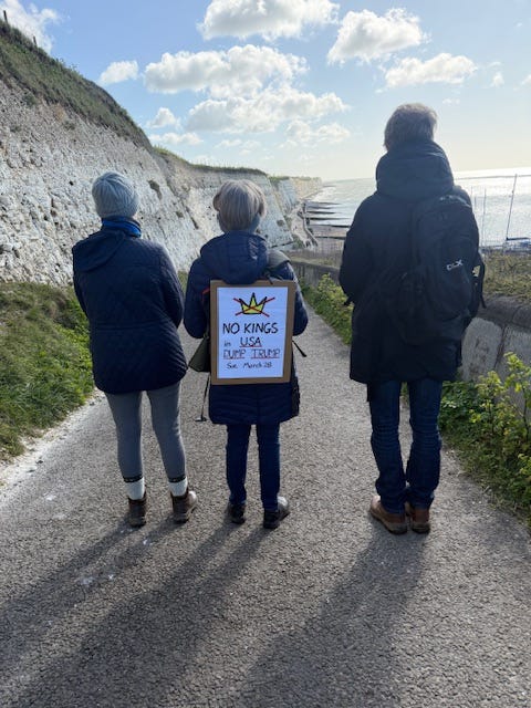I live in MA, USA, but am in England on March 28. This was taken in Brighton, UK, supporting the No Kings 3 USA protest. Attracted some interest from fellow cliff walkers!