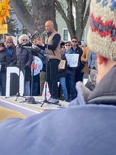 Indivisible San Jose (CA) enjoyed perfect weather, exhilarating energy, and inspiring speeches from Senator Adam Schiff, Reps Liccardo and Khanna. One photo is our group - the other with our Congressman Sam Liccardo.