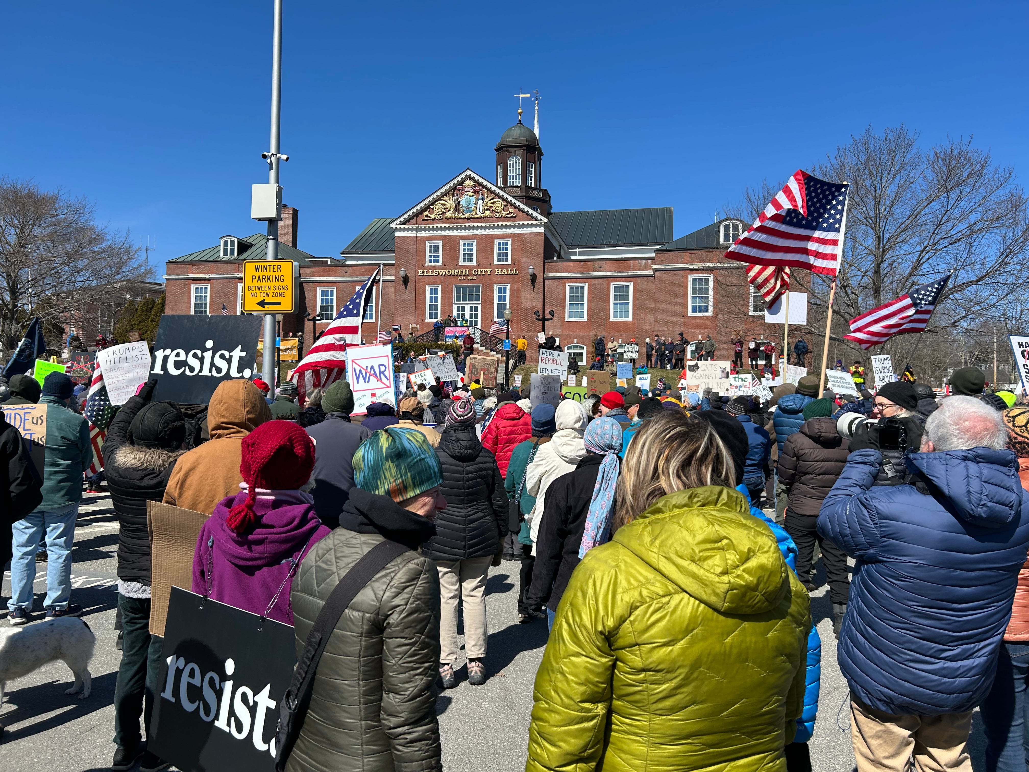 A very large group gathered in South Burlington, VT, one of the multiple demonstrations in the greater Burlington area.