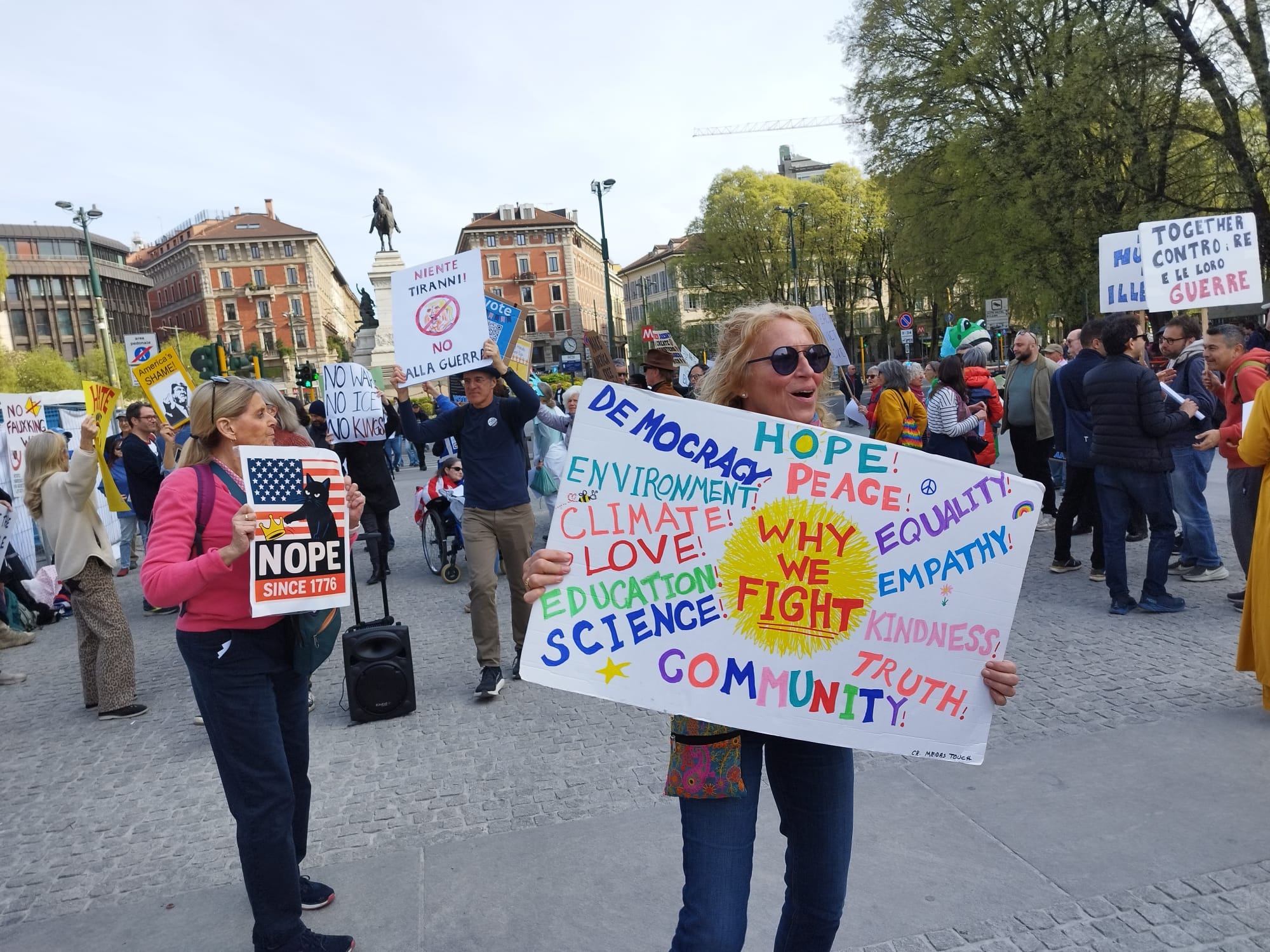 Italy. My wife traveled all day back and forth to the big protest in Milan. I protested solo in Camogli, near Genoa. Every little bit helps and counts!