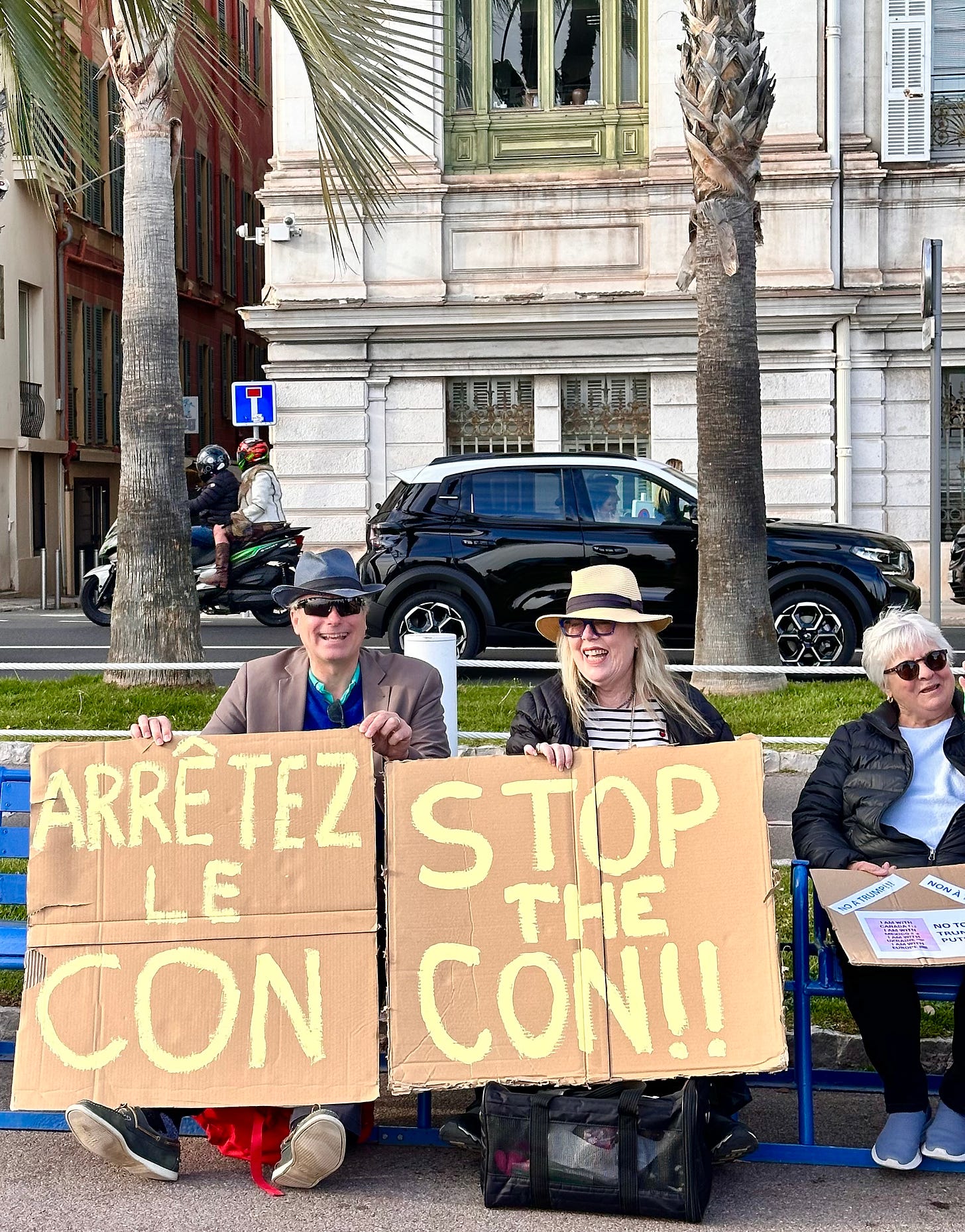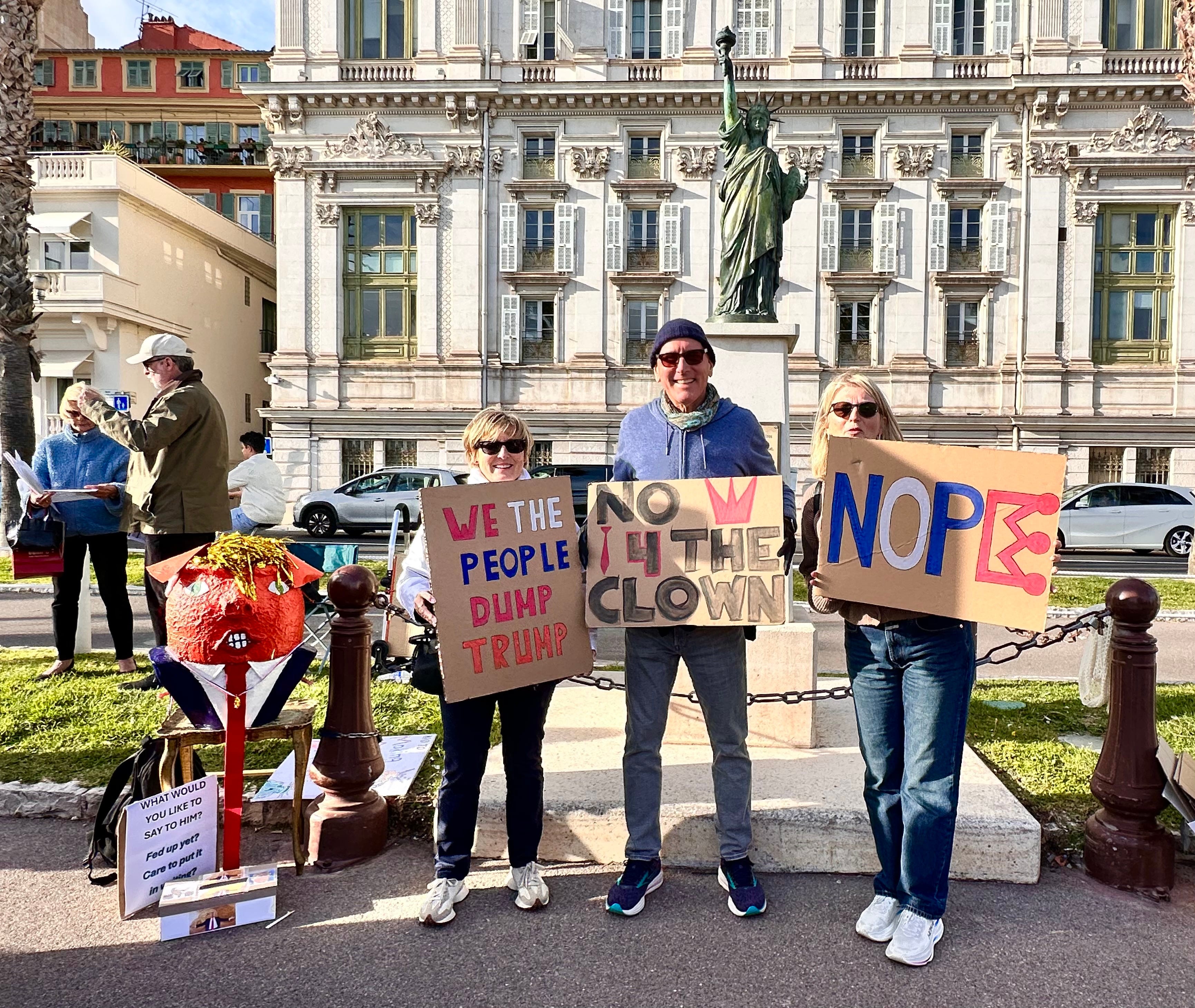 NO KINGS in NiceAbout 250 people gathered on the Quai des États-Unis in Nice, France, under the gaze of the city’s replica Statue of Liberty.