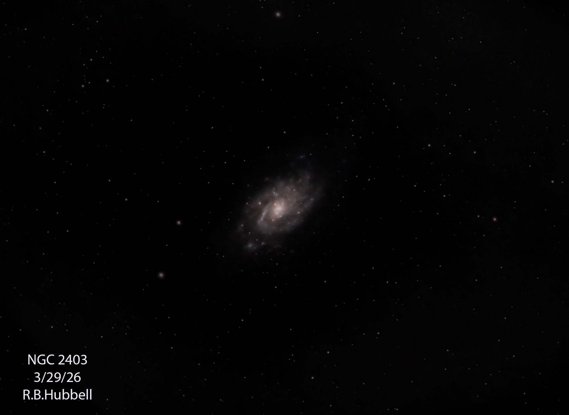NGC 2403 is an intermediate spiral galaxy 9.7 million light-years from Earth, and is about 90,000 light years in diameter.