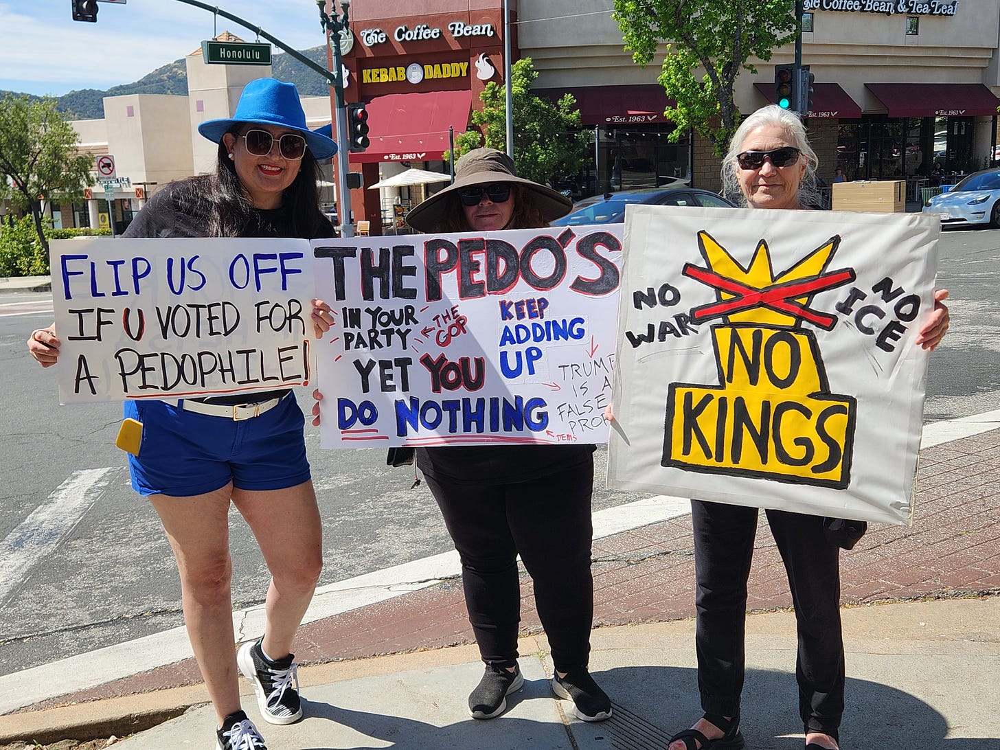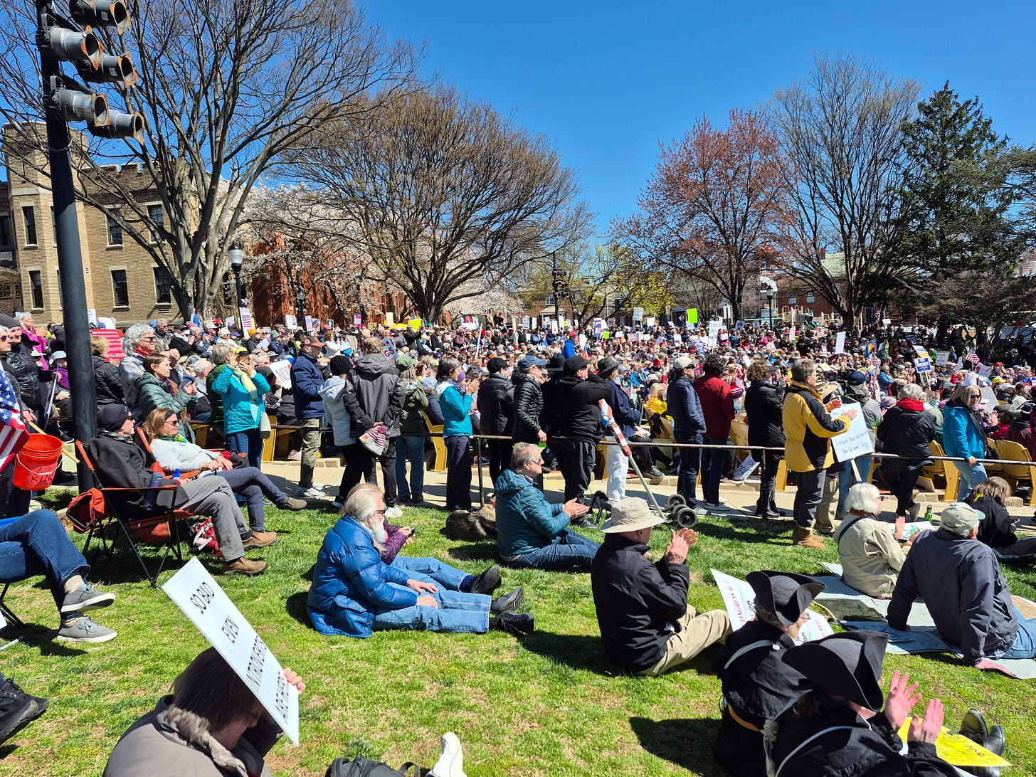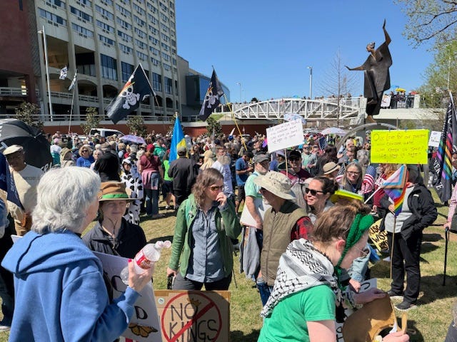 I continue to hear from some readers who worry about the lack of coverage, or who experienced a protest that was smaller than the equivalent No Kings 2.0 protest. As to that point, I say, “Relax.” We can’t be at peak performance at every moment in every place. The concept of “regression to the mean” is a powerful phenomenon that should not cause panic. Moreover, it appears that the NKD3 organizers attempted to funnel protesters to larger, centralized protests.