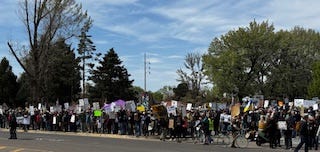 About 7000 marching through downtown Traverse City Michigan today!