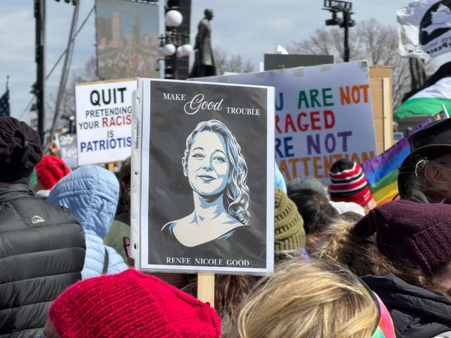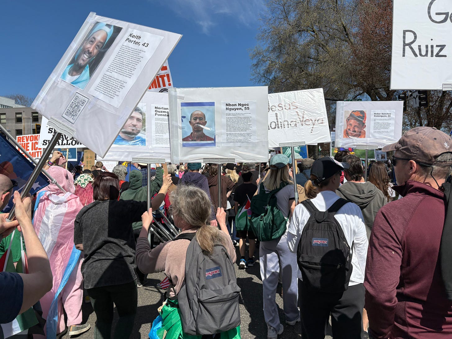 Portland Oregon. An artist and wonderful woman, made 50 posters with names of people killed by ICE. It was a sobering and heartbreaking experience to bring their names with us as we marched on NKD3