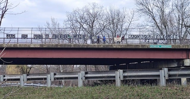 Weekly bridge standout in Greenfield, MA. We heard lots more honking horns from both the bridge road and the highway today,