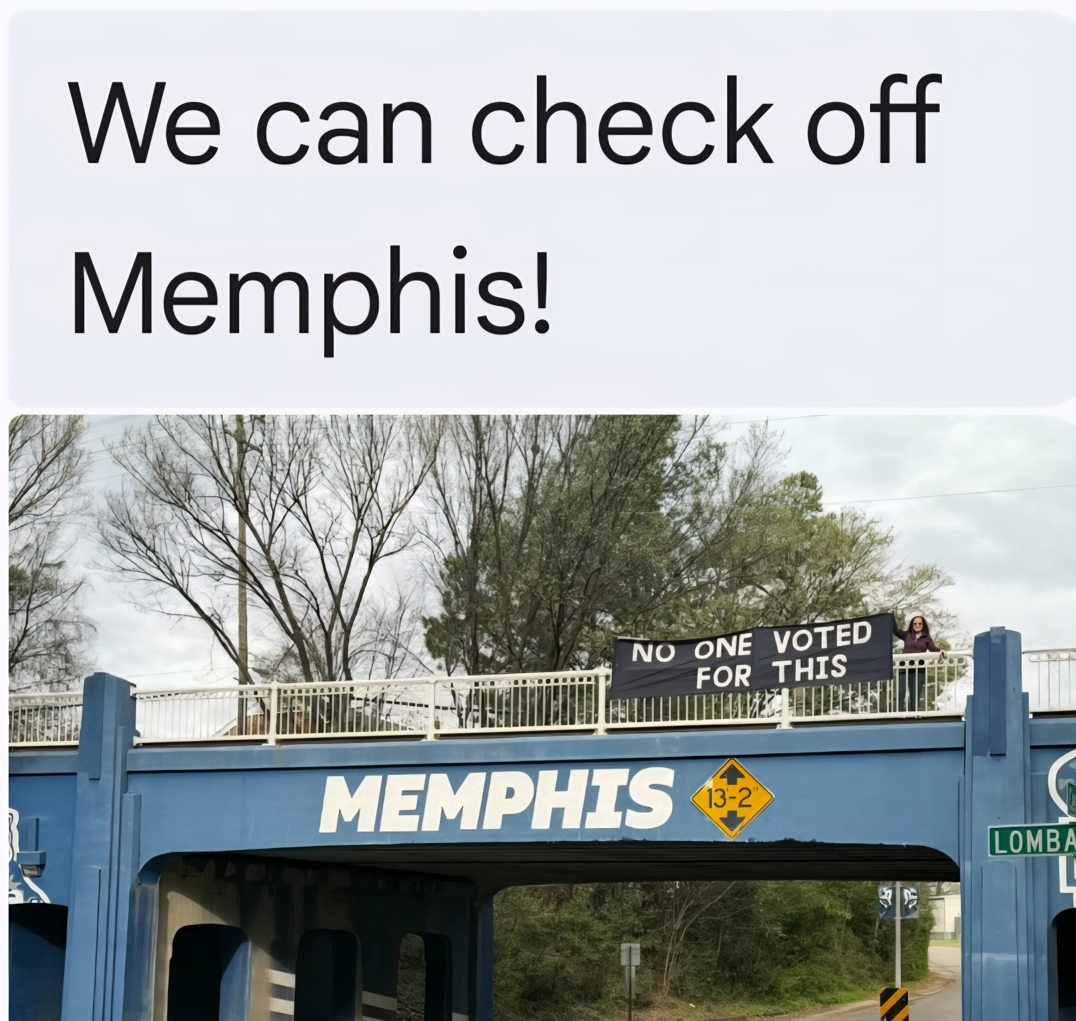Stops along the way from Minnesota to Mobile, AL for a No Kings Day protest: