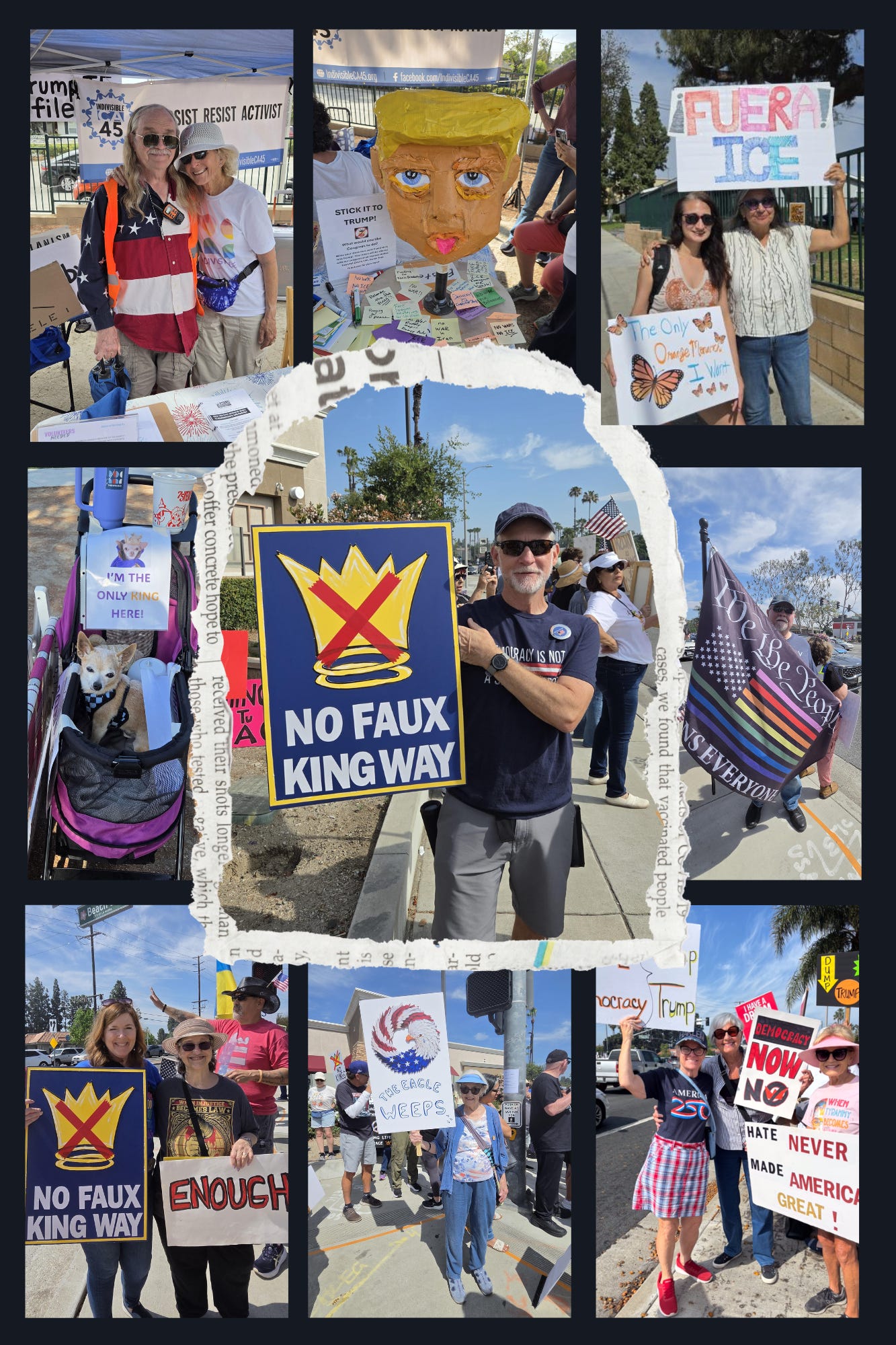 Collage of photos from 3 of the 14 protests in Orange County California attended by our Fullerton Unitarian Universalist Congregants.