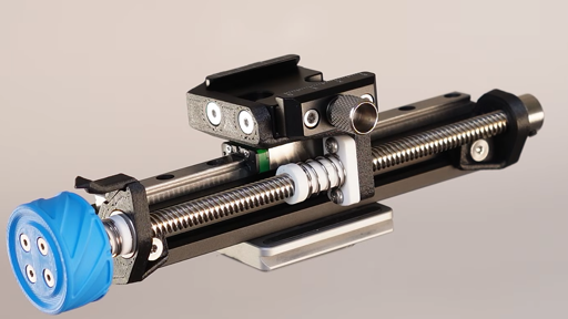 The slider is built around a 150 mm linear rail, though it could easily be lengthened or shortened to suit your needs. A T8 leadscrew, paired with anti-backlash nuts, translates the knob’s rotation into smooth linear motion. The knob itself uses a custom-designed anti-backlash mechanism to ensure the slider works cleanly in either direction.