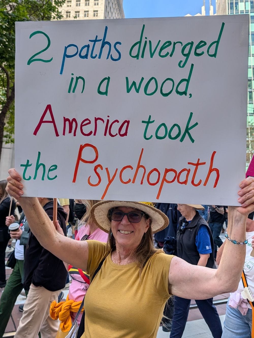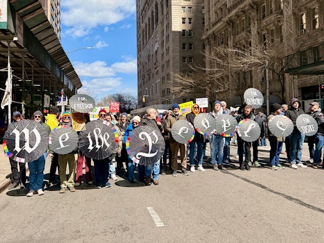 March 28th - I painted “We the People” and “For Justice, Democracy, Prosperity, and Freedom” and “Queer Joy is Resistance” as a message for what we are FOR, hoping that we could shift into something more foundational and grounding.
