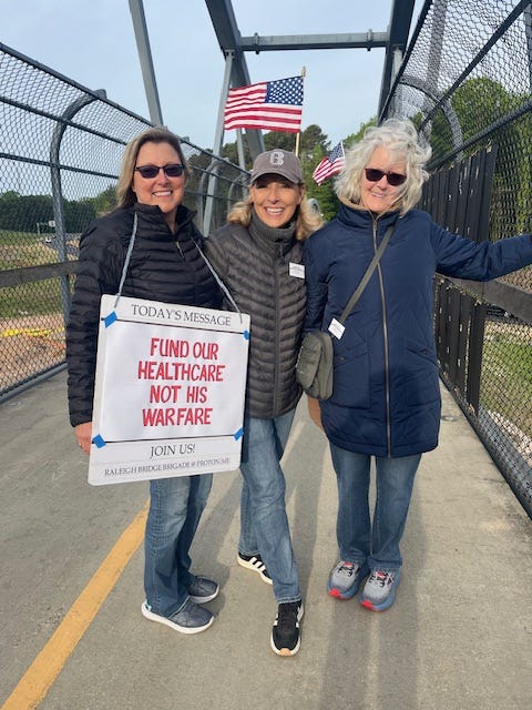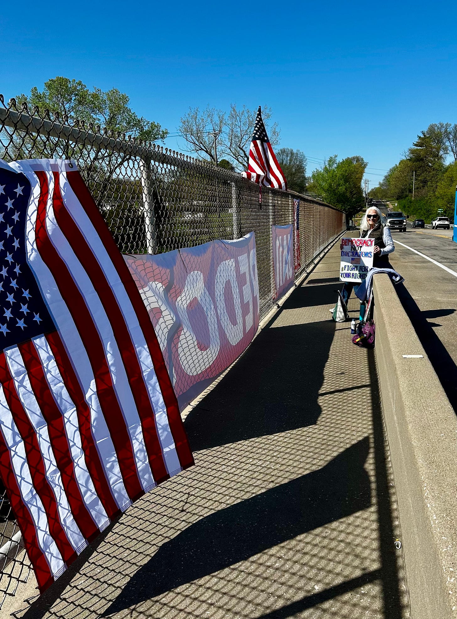 Today’s newsletter couldn’t have come at a better time! A friend Debbie Ott and myself on the Sappington Road overpass for about an hour on Monday 4/6 - Jail Pedo’s is what our banner said, one of a few IndivisibleSTL provides as loans to anyone who wants to participate!