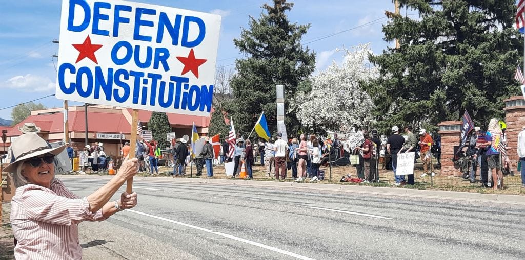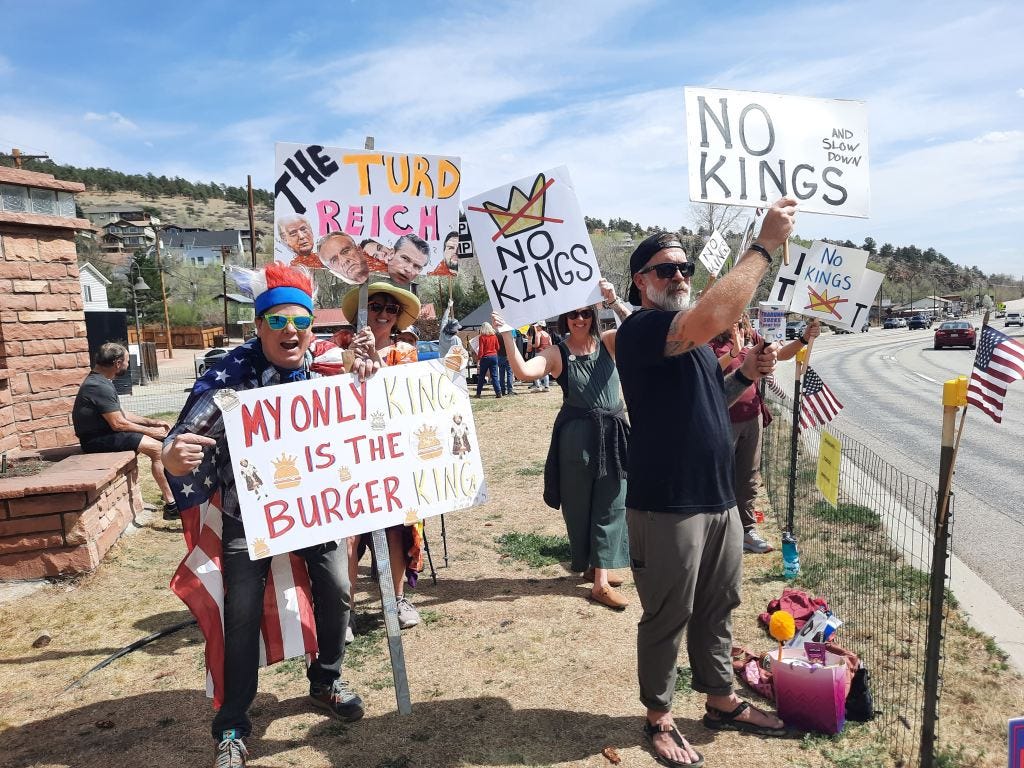 Our group, Lyons Neighbors 4 Democracy, has sent you photos which you’ve included, thanks. I attach a few more today from No Kings. We have been meeting weekly since Feb. 5, 2025, having around 80 protesters per week; over 500 on No Kings days. Pretty good for a town of 2100. ‘Small but Mighty’ we say.