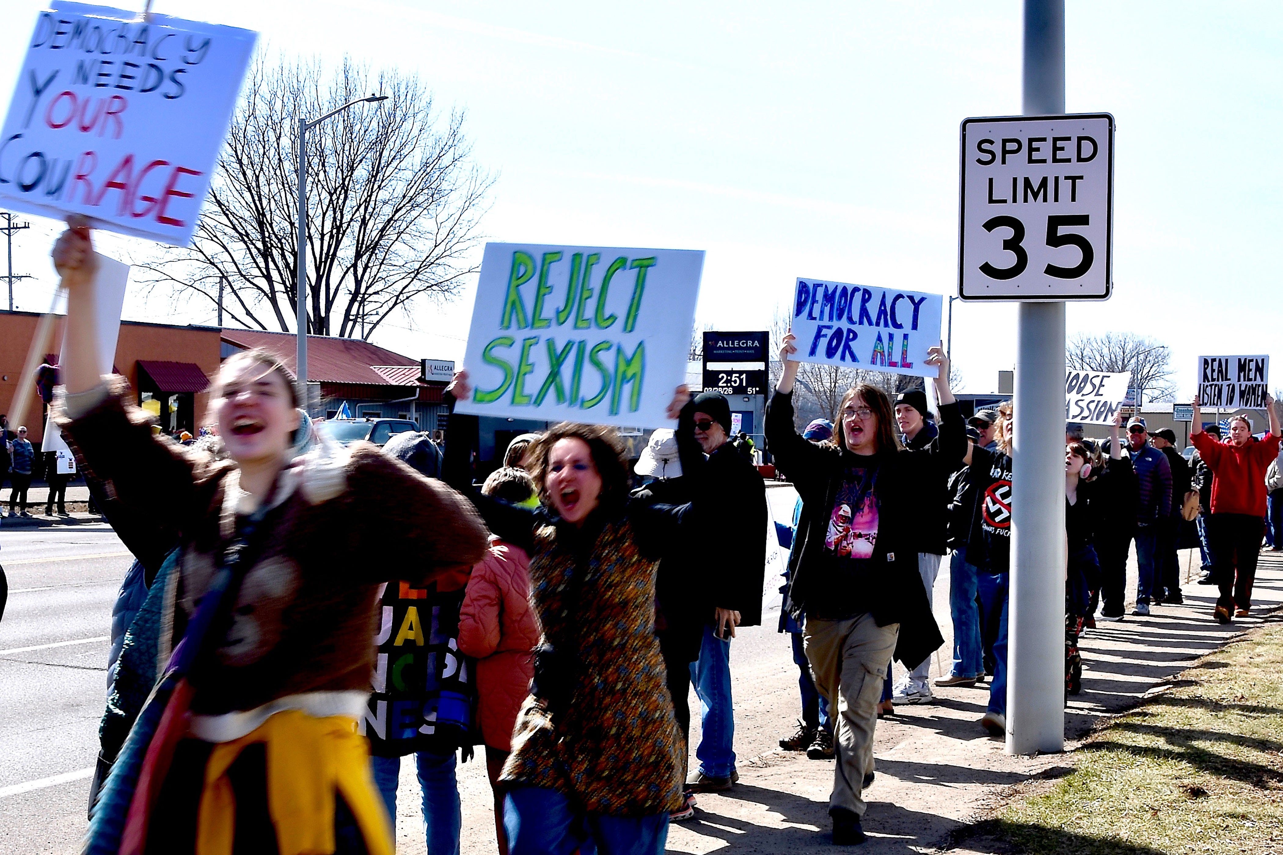 Each of these photographs were made along the appropriately named “Washington Street,” in Brainerd, Minnesota during the Brainerd Lakes Area Indivisible action on March 28, 2026.