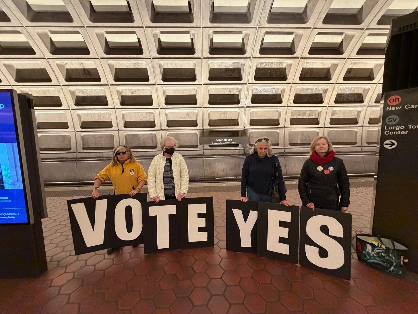 WofA members engaged commuters in the Metro urging them to Vote YES on the April 21 redistricting referendum – underground Visibility Brigades are now a thing!