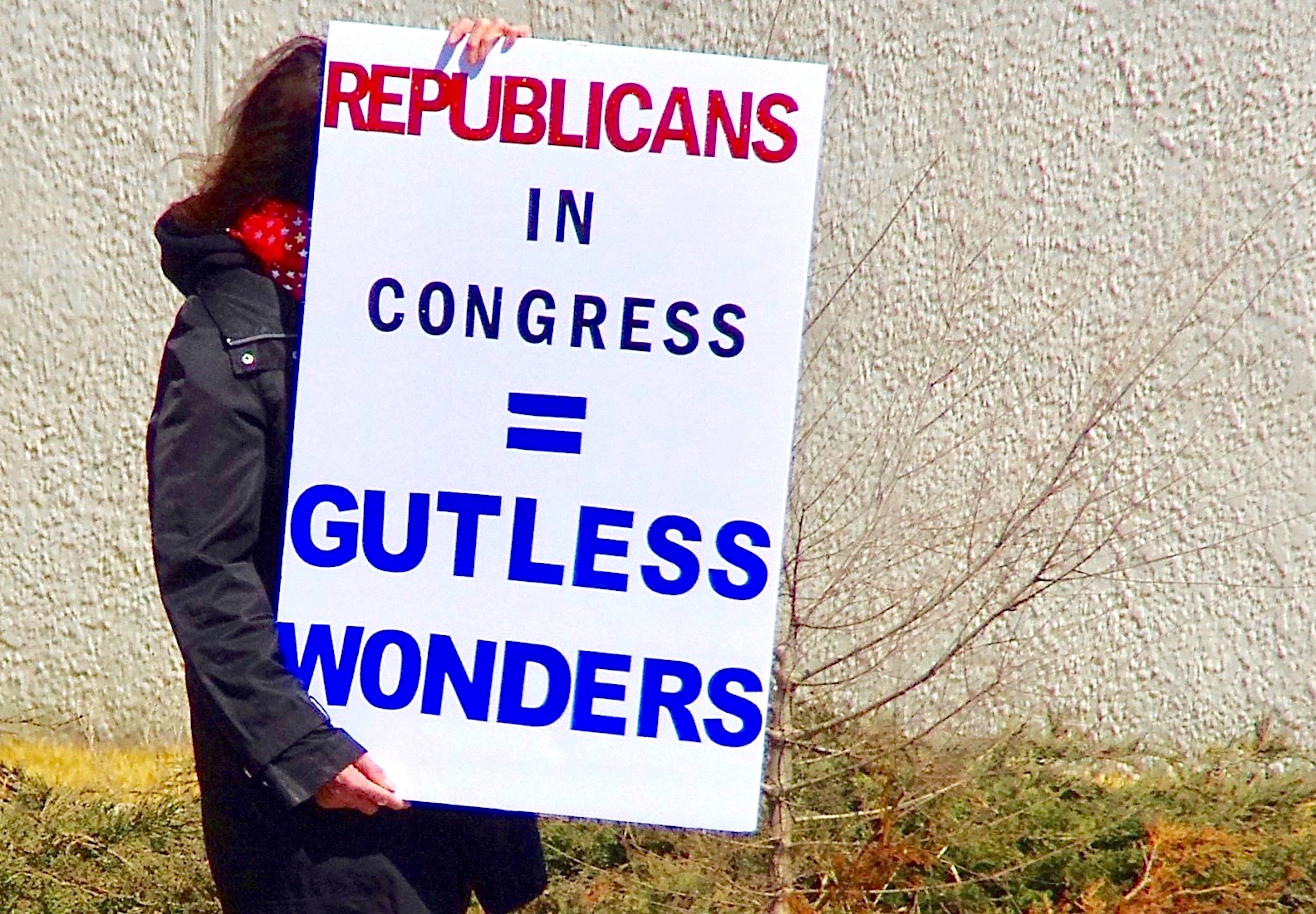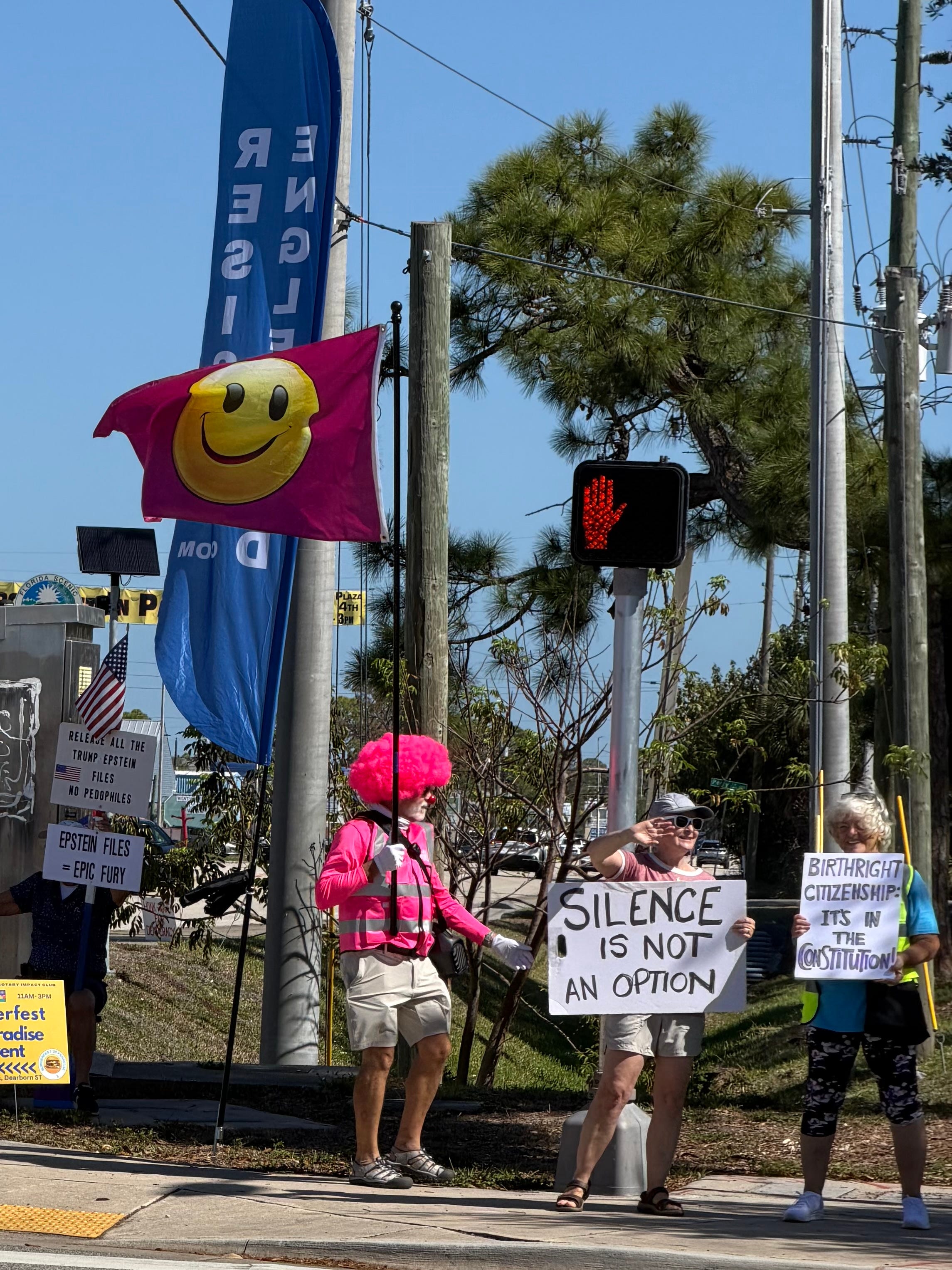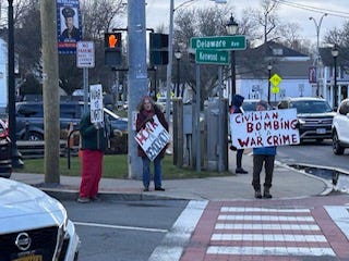 A cold and very windy evening in the center of Delmar, NY, 4/7/26. We continue to STAND UP & SPEAK OUT on the madness of the President and his Republican enablers.
