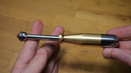 The final version is has classic hexagonal rod split in two, so that a chisel-shaped rod can spread the two prongs out to engage the sides of the Allen bolt. Even with that settled, the prongs and wedge had to be redesigned several times to find exact shape and heat-treatment that would work. At this point the range is anything between 4 mm and 6 mm, which is admittedly narrow, but [Chronova Engineering] believes the mechanism has the potential to go wider.
