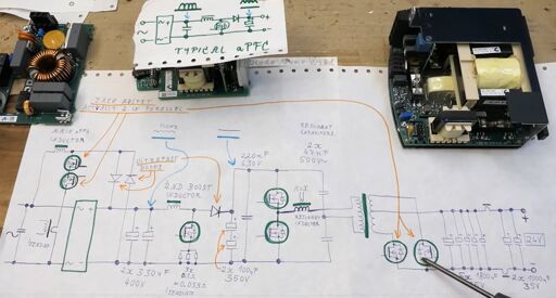 The best part about post-mortem teardowns of electronics is when you discover some unusual design features, whether or not these are related to the original fault. In the case of a recent [DiodeGoneWild] video involving the teardown of an industrial DIN-rail mounted 24 V, 960 Watt power supply, the source of the reported bang was easy enough to spot. During the subsequent teardown of this very nicely modular PSU the automatic power factor correction (APFC) board showed it to have an unusual design, which got captured in a schematic and is explained in the video.