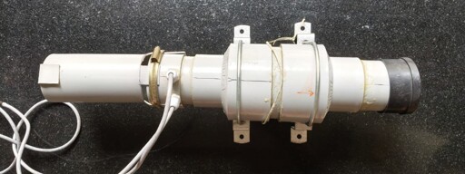 This sub is made from a few lengths of PVC piping of various diameters. There is an inflation system comprised of a solenoid and a pump, and a deflation system, also comprised of a solenoid and a pump. The inflation and deflation systems are used to flood or evacuate the ballast which controls depth. There are three pumps for propulsion and steering, one central pump for propulsion and two side pumps for directional control, allowing for steering through differential thrust. Power and control is external and provided via CAT6 cable.