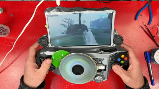 But at last, the portable Xbox could be used, so the build was finished off with a bit more hot glue and a case made of duck tape. While certainly not pretty, it does, in fact, work, with nearly 10 minutes of battery life. It’s not very handheld, or very portable, but it does meet the definitions of both while maintaining a CD drive, something likely never done before. Just keep your fingers clear of the spinning disc.