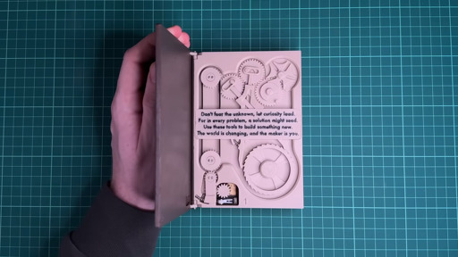 Being just four pages, you might argue this is but a pamphlet. But since it takes up a couple inches of shelf space, it certainly looks like a book from the outside, which is exactly what [AxelMadeIt] was going for. To get a more book-like spine, his hinge design sacrificed opening flat, but since the pages are single-sided, that’s no great sacrifice.