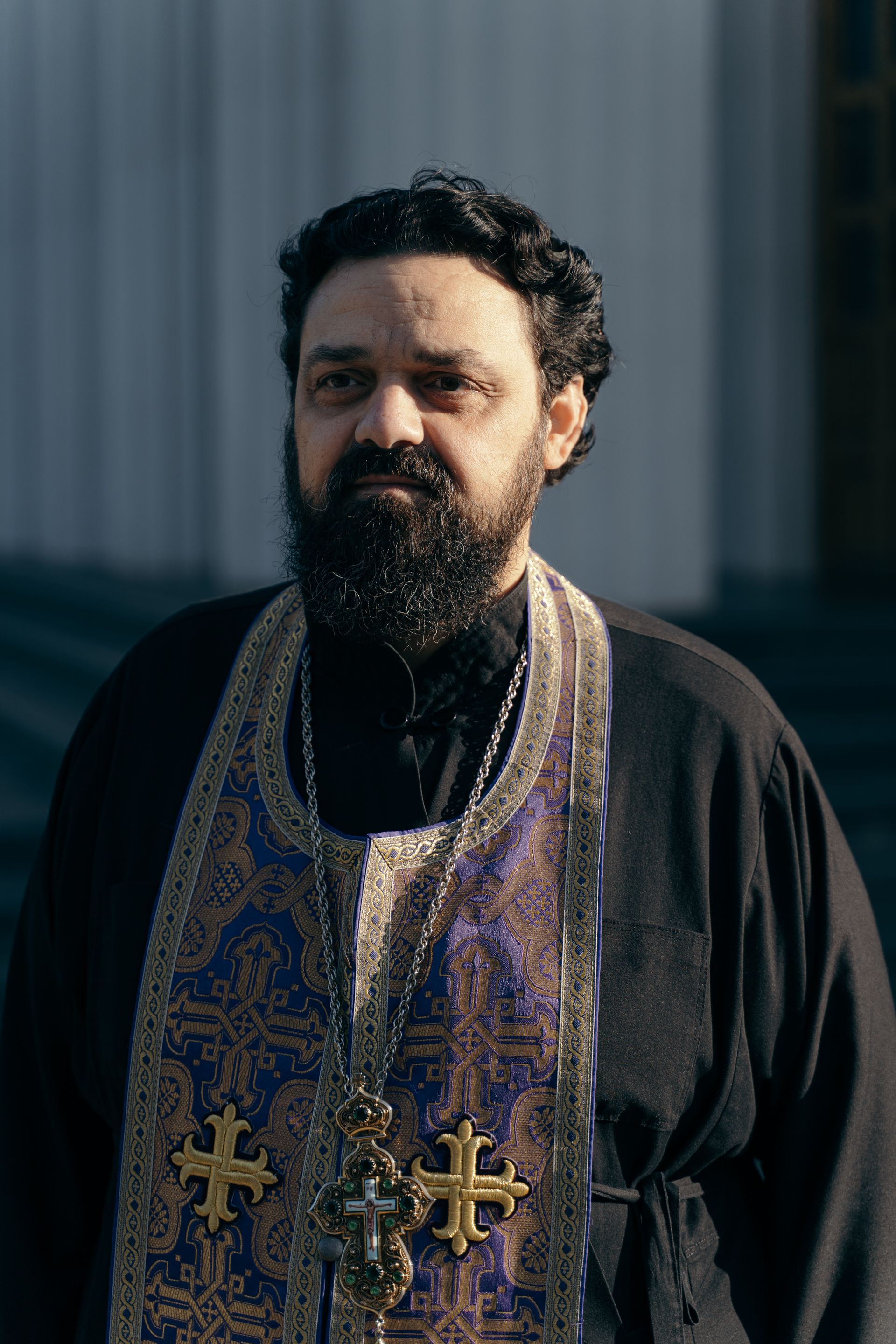 Father Emilian, 50, in Chișinău, Moldova, on Sept. 28, 2025. (Florian Scheible / The Kyiv Independent)
