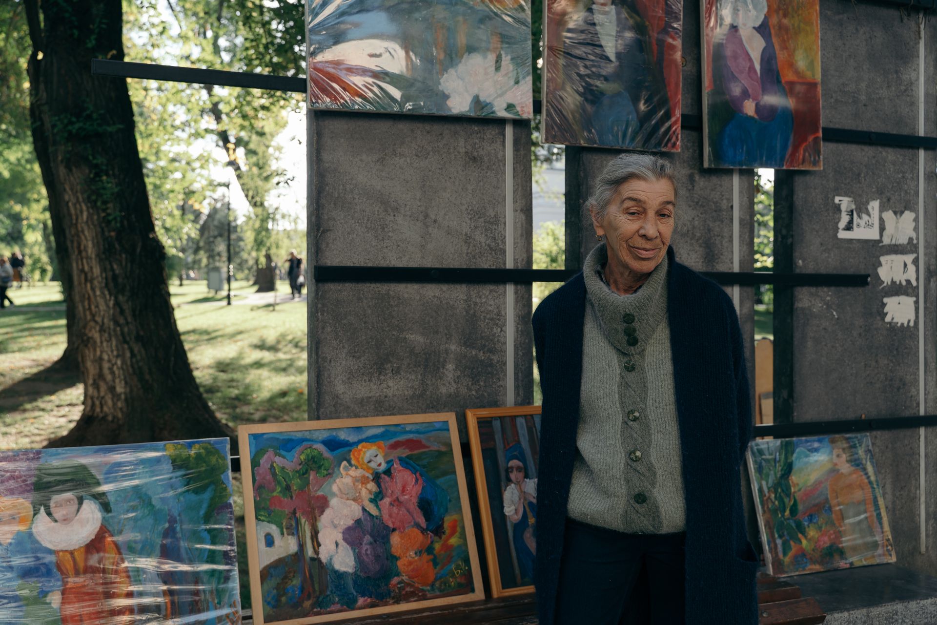 Valentina, painter in Chișinău, Moldova, on Sept. 28, 2025. (Florian Scheible / The Kyiv Independent)