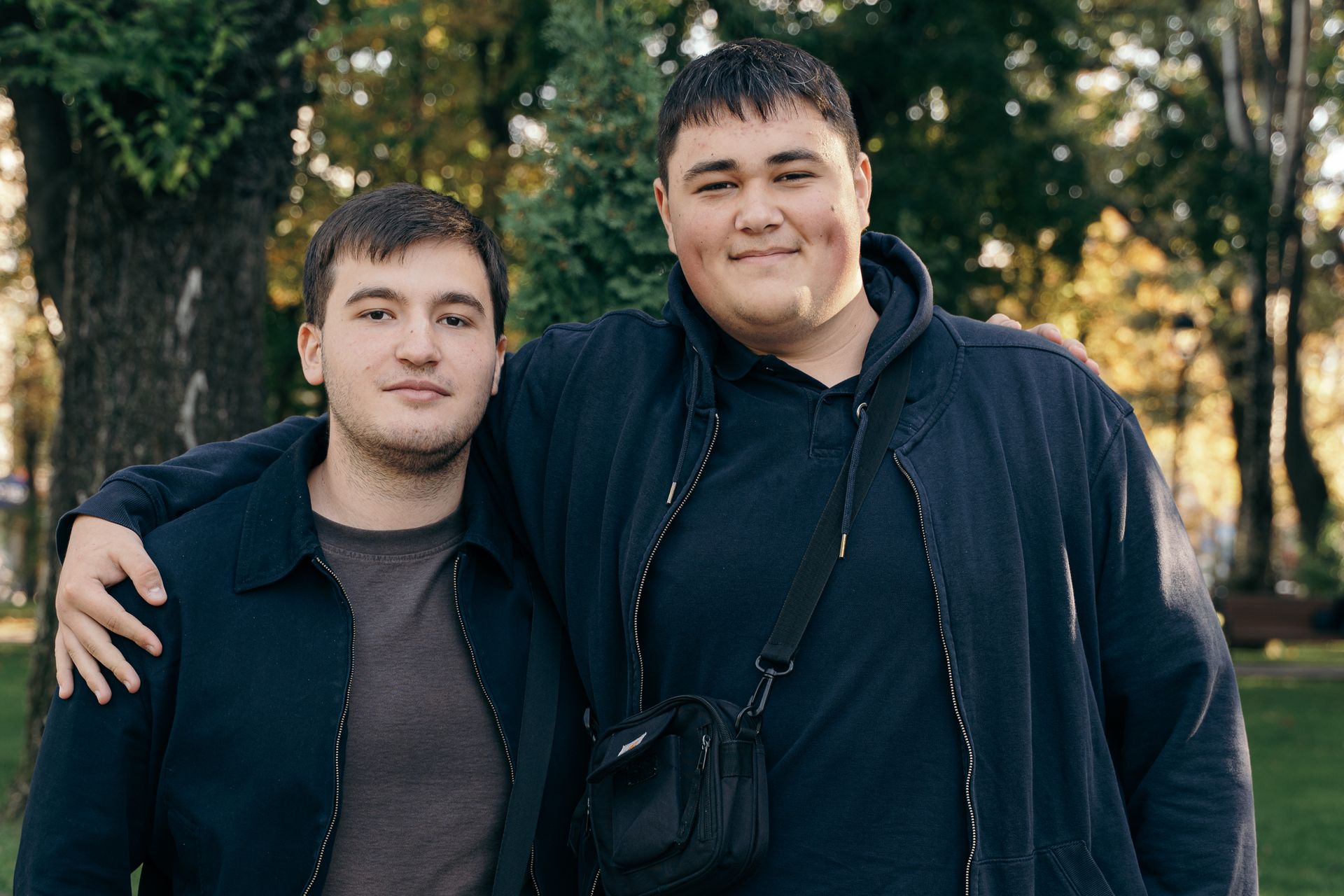 Emil (L) and Victor ®, both 19, in Chișinău, Moldova, on Sept. 28, 2025. (Florian Scheible / The Kyiv Independent)