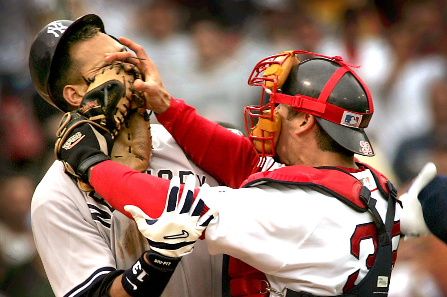 The Yankees would end up winning that series the next night on now-manager Aaron Boone’s walk-off homer; the Red Sox would get revenge with their comeback from a 3-0 deficit against the Yankees the next year, then end the Curse of the Bambino in the World Series. Hostilities had existed from the days of Babe Ruth to Bucky Dent to the ’90s, but those were the halcyon days of the Red Sox–Yankees rivalry, when Pedro Martinez was tossing Don Zimmer to the ground, when A-Rod was slapping the ball out of Bronson Arroyo’s glove, and Jason Varitek was punching A-Rod in the face, which led to an iconic image that I assume is still Ben Affleck’s lock screen to this day. It was a time when the Yankees and Red Sox seemed to be having Kaiju battles every night, epic confrontations that shifted the balance of the entire sport with every pitch. It was a rivalry that made you want to punch somebody, and to get punched.