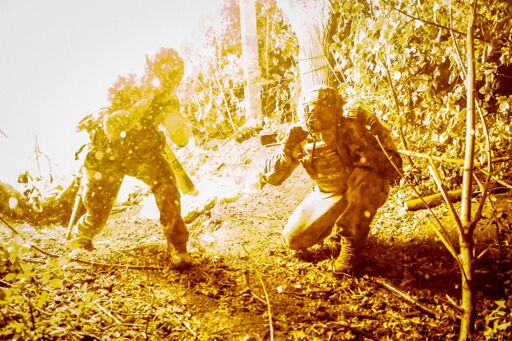 A natural question that arises more than three years into Russia’s full-scale war would be whether these photographers’ understanding of their craft has shifted in the transition from civilian life to a combat role. The answer is — not much.