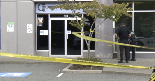 On Tuesday, Surrey police confirmed they were called to the building housing Swift 1200 AM, on 76 Avenue, after a staff member noticed evidence of a shooting.
