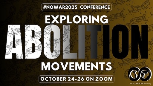 #NoWar2025 Conference - Exploring Abolition Movements, October 24-26 on Zoom. WorldBeyondWar.org