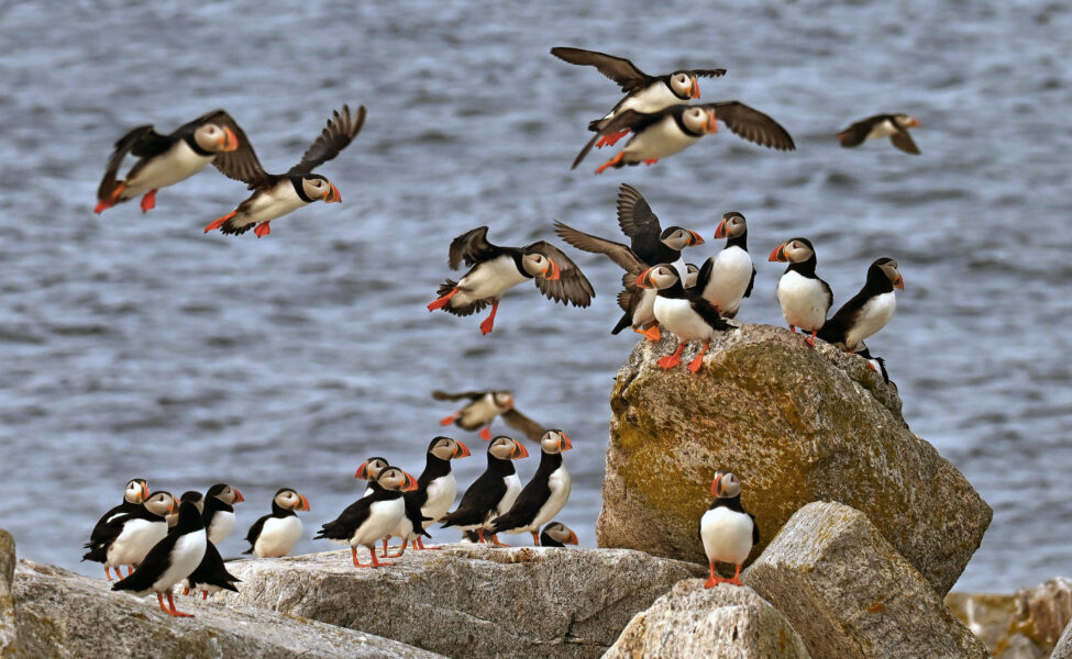 Puffins were hunted off Seal Island in the 1880s. Breeding began anew in 1992 and a record 672 breeding pairs were estimated last year. Photo by Derrick Jackson.