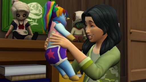 Alternatively you don’t have to make the offer and can leave Pretty Pegacorn or Wild Child as dolls forever. Sims can still interact with the toy in less fantastical ways, choosing to either reminisce on the old days or seek comfort from it when they’re down.