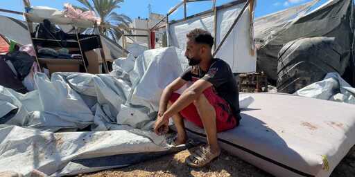 “Everyone here is displaced, no one is involved in anything, not in the resistance or anything. They crushed us with a drone strike. They are turning us into sliced meat,” Abu Sharakh said. “No where is safe, it’s all lies. All of Gaza is not safe. No Arab country is safe. Either they kill us all or they force us all out. We don’t have any energy left. My tent is gone now. What am I supposed to without a tent? My things are gone. I can’t take it anymore. Day after day. We are exhausted.”