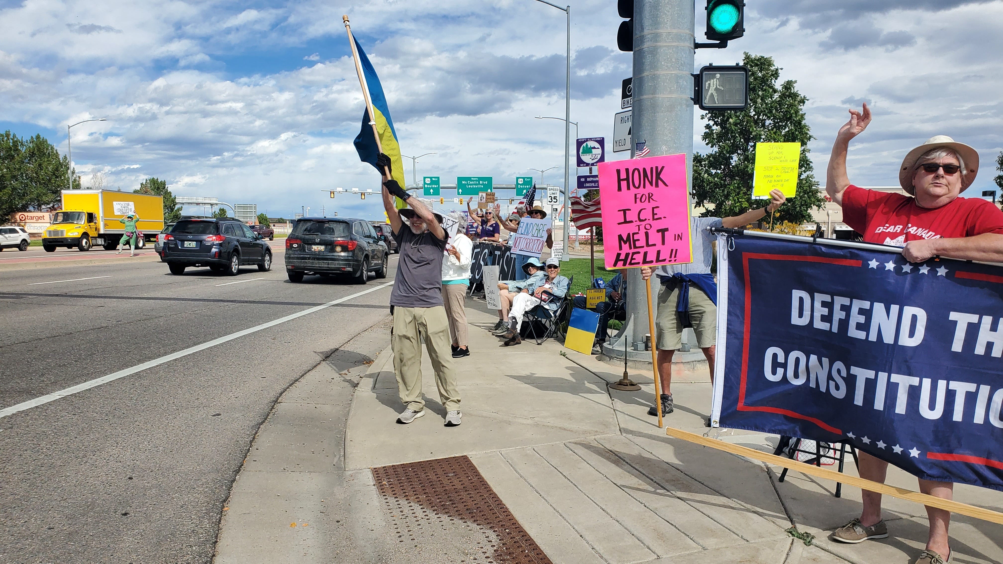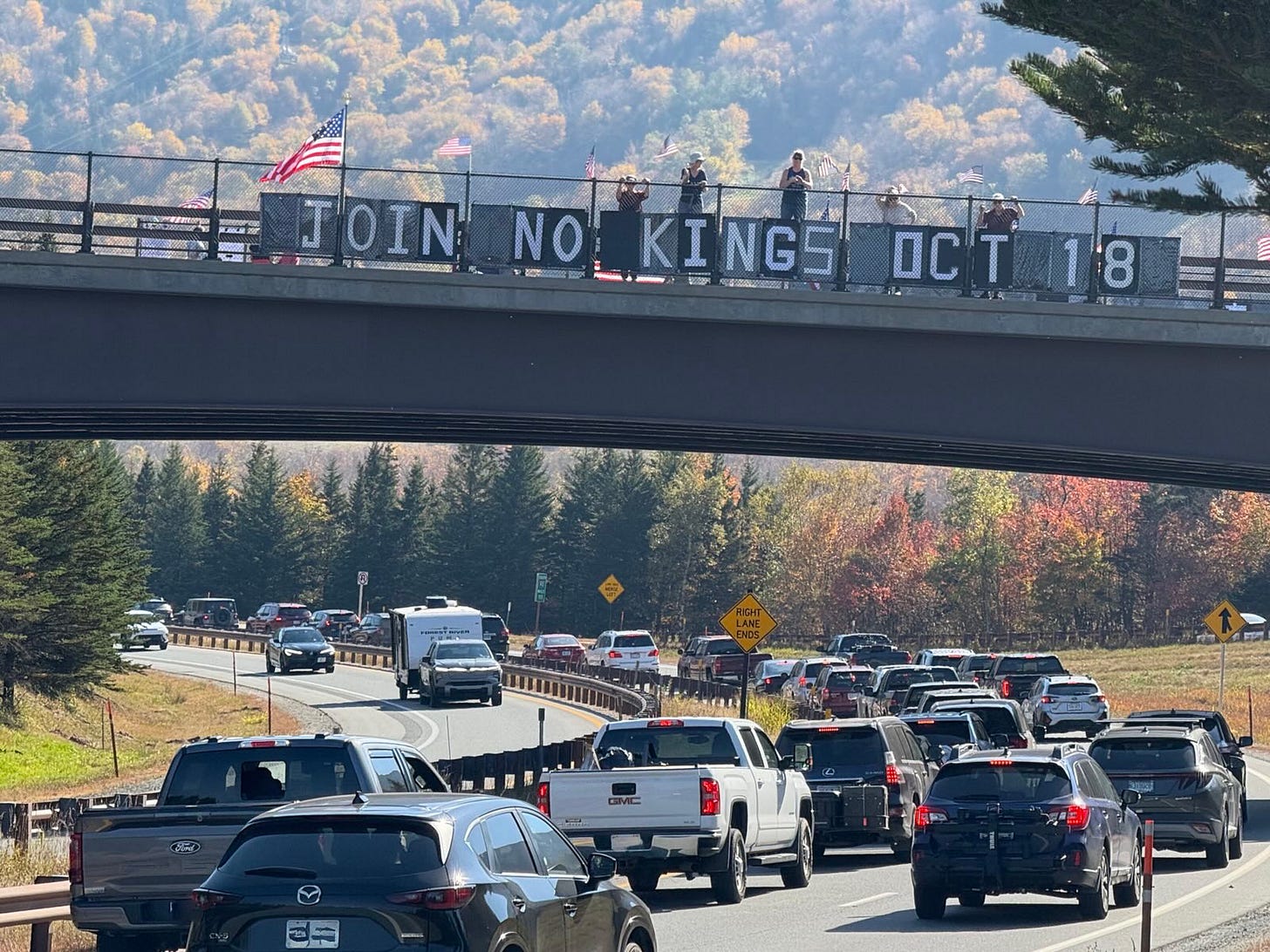 Below, from Franconia, NH, “Here are our North Country Resilience displays: “Join No Kings Oct 18” and “Honk 4 Healthcare.”