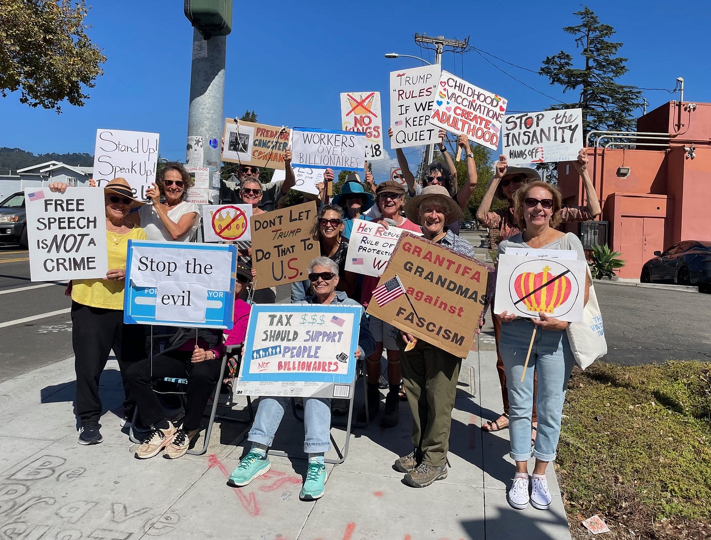 Below, Oakland, CA: “Here’s our weekly Dump Trump demonstration in Oakland, CA. The highlights for me yesterday was a tween girl waving excitedly and someone else taking video and waving, which I hope she’ll put on social to show what’s happening in her neighborhood.”