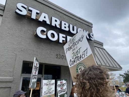 “I’ve been laid off from my job by corporate officials who nobody elected,” stated Nick Heard, a former barista from the now shuttered Maple Street shop, the first to unionize in Louisiana. “They can afford to spend millions on store shutdowns and on the CEO’s salary but can’t afford to pay us a decent wage.”