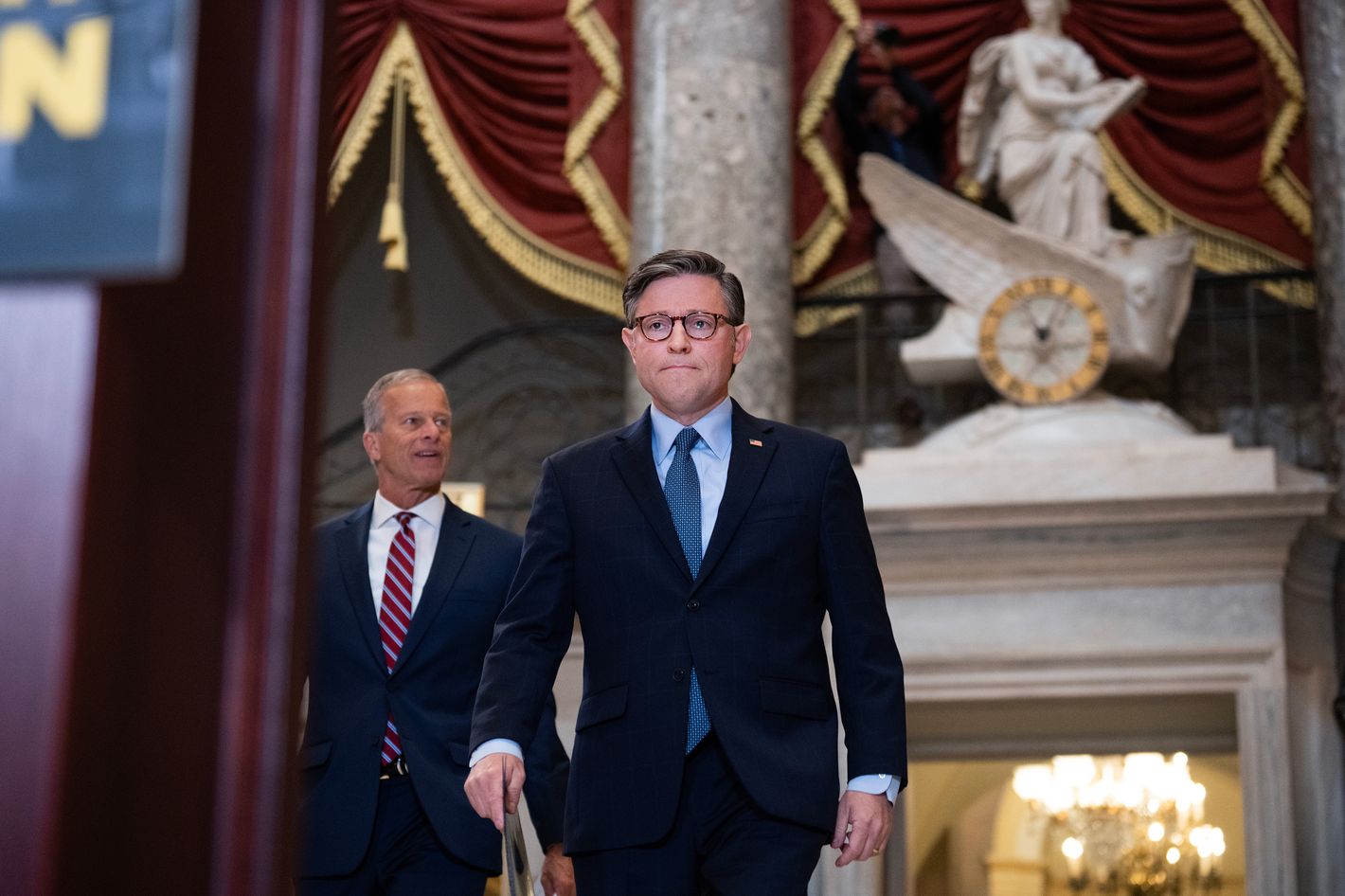 The two things have nothing to do with each other, so it’s pretty clear the Speaker is just stalling. Maybe in some back room of the Capitol, MAGA goons are putting the screws to Republicans Lauren Boebert, Majorie Taylor Greene, and Nancy Mace to get at least one of them to remove her name from the discharge petition introduced by Democrat Ro Khanna and staunchly anti-Trump Republican Thomas Massie. But each of these women has strong reasons for caring about the Epstein files (Boebert and Greene, for example, rose in GOP political circles in part because of their sympathy for the QAnon cult, in which Epstein is an important devil figure).