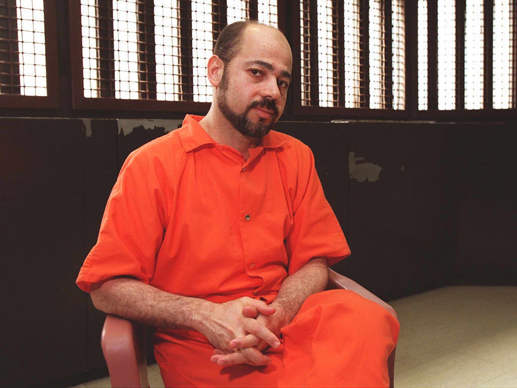 Mousa Abu Marzouk sitting in a prison interview room on April 11, 1997 at the Metropolitan Correctional Center in New York where he was being held by the US Immigration and Naturalization Service as a suspected terrorist. (Photo credit: JON LEVY/AFP via Getty Images.)