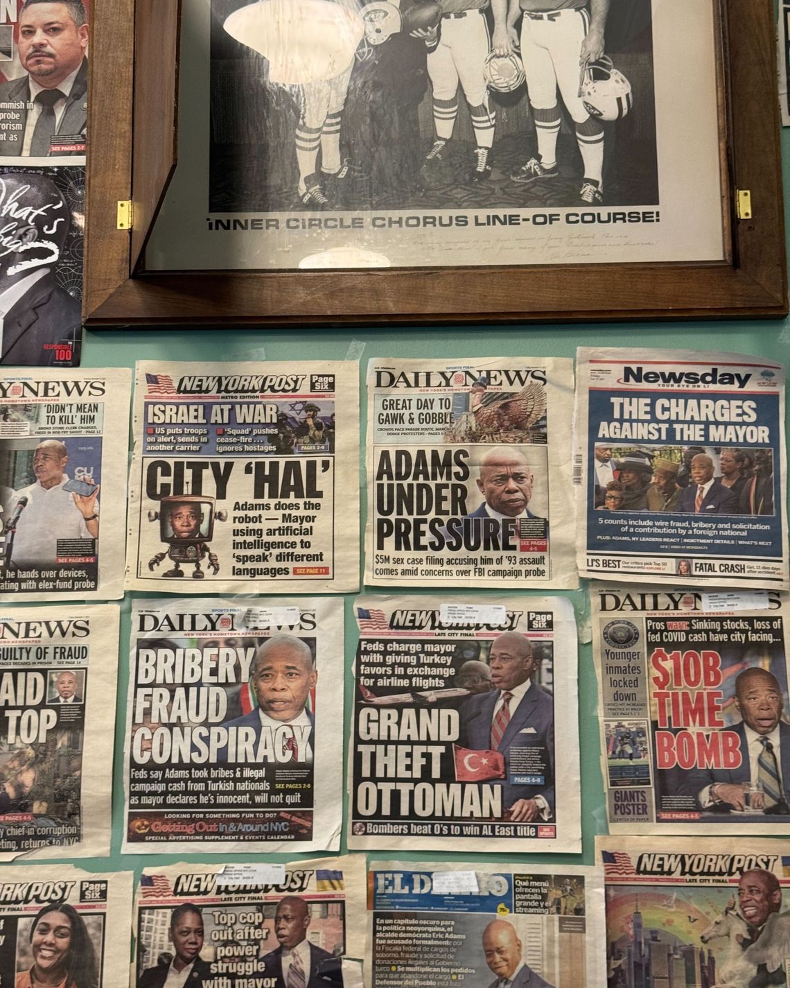Another piece of memorabilia in Room 9 is a copy of Don’t Let It Happen, Adams’s 2009 book, which had been mentioned in articles but was largely forgotten until Byline Byline highlighted it last January. That prompted Honan to order the book from Amazon, “literally just to make my colleagues laugh,” she said. At a news conference a few days later, an Associated Press reporter asked Adams about a story he told in the book about firing a gun at school. The mayor claimed that not only did that not happen but that the book “never got into print,” at which point Honan had a colleague grab her copy so she could present the mayor with it. “This man — a book is in existence, and he claims it doesn’t exist,” said Honan.