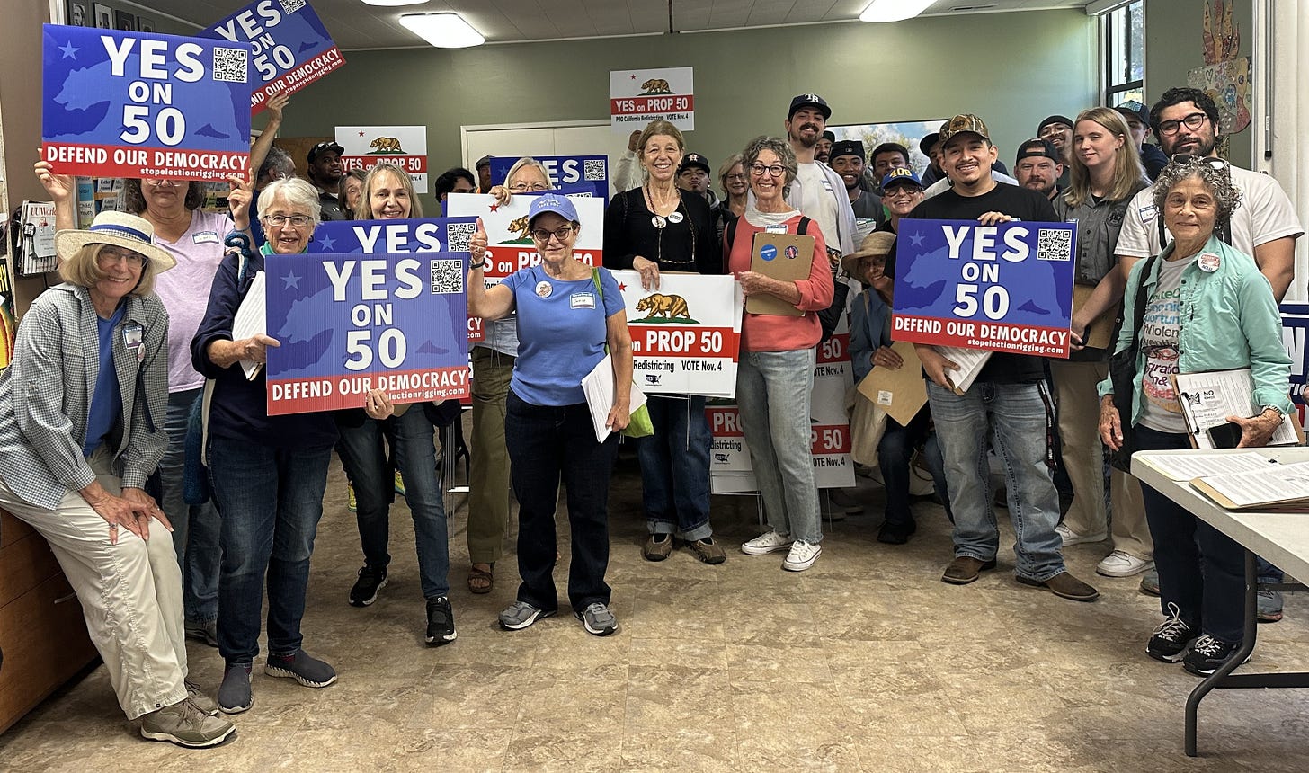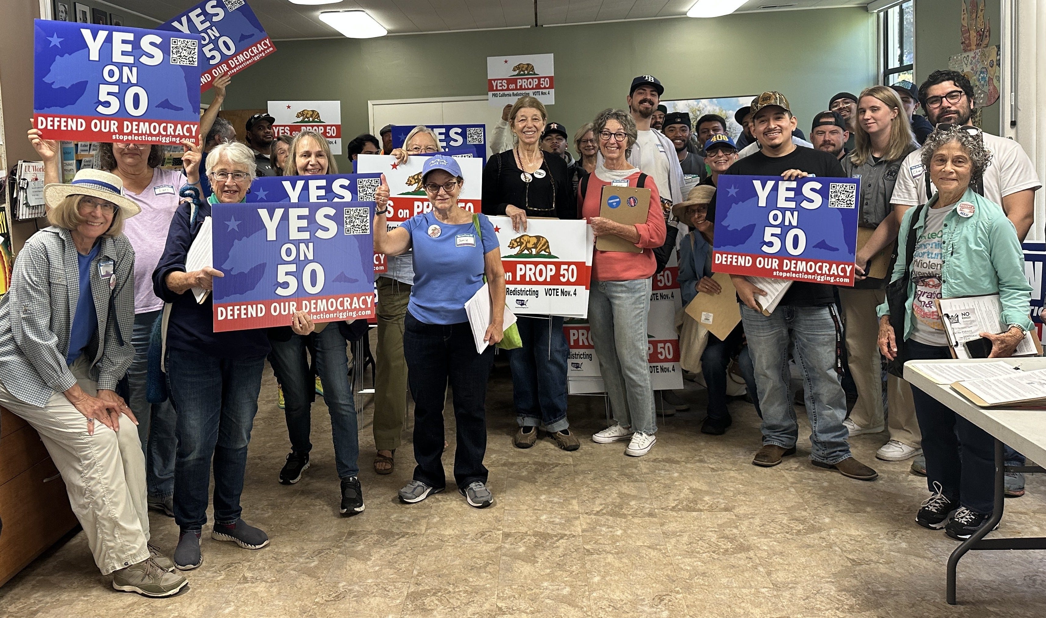 Below, UU Fellowship in Redwood City, preparing to canvass for Prop 50!