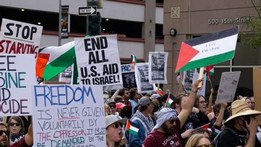 “I can talk about the statistics, I can talk about the death toll like I’m an economist projecting the elimination of my people for you,” said Maya Otoum of US Palestinian Community Network, “But I’m a Palestinian woman, and ever since I was cognizant I knew about the humiliation and the devastation that Israel has given to Palestinians.”