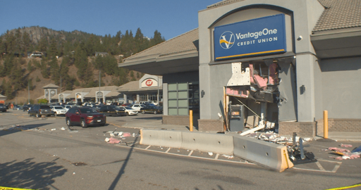 Investigators say the suspects used a front-end loader and a pickup truck to forcibly remove the ATM deposit box from the building before fleeing with it.