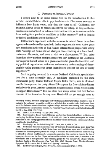 Back in my 2000 California Law Review article, Vote Buying, I wrote about how some jurisdictions, such as California permitted payments for people to register or to vote (so long as those payments were not made to induce people to … Continue reading California Will No Longer Allow Payments to Induce People to Vote to Boost Turnout (Sometimes Selectively) in State Elections →