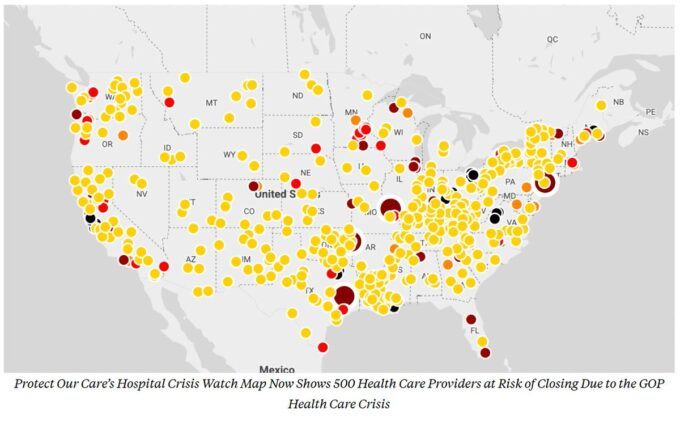 At least 500 hospitals, nursing homes, and clinics are now closing or at risk of closure because of the Trump/GOP bill that guts health care funding, according to a new report from Protect Our Care.