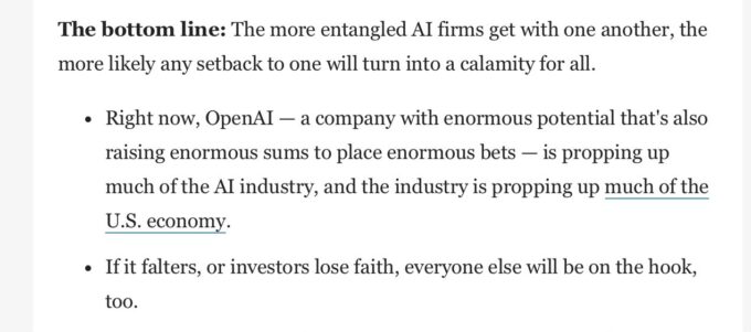 - Axios on the possibility (inevitability?) that a bust of the over-inflated AI bubble will collapse the entire economy before AI collapses the atmosphere…