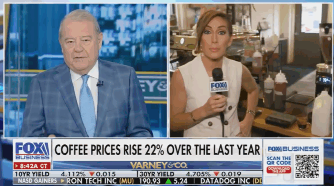 Roasted coffee prices are up 22% in the past year. There’s a 50% tariff on coffee from Brazil. That’s the nation’s biggest coffee supplier. Take a look at this bag right here. The container that bag came in is costing this coffee shop $68,000 more than it did over the summer, so he had to pass some of that along to customers.