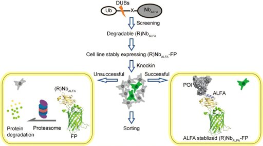 A research team led by Prof. Xu Pingyong from the Institute of Biophysics of the Chinese Academy of Sciences has developed an innovative approach to visualize and rapidly screen small peptide knockins. The new approach, termed ALFA Nanobody-guided Endogenous Labeling (ANGEL), solves a long-standing problem of high-throughput screening for nonfluorescent small peptide knockins. Results were published in Nature Chemical Biology on August 29.